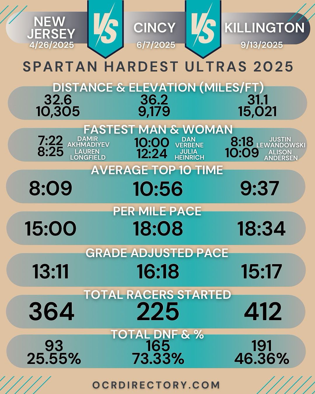 Spartan Killington has just about always been considered the hardest US Spartan Ultra. But this year?! The stats are actually showing that Cincy was harder 🙃
