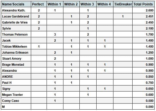 There was an error in the IG story last week, showing Lucas Gardebrand & Gabrielle de Vries having the best Predictions.